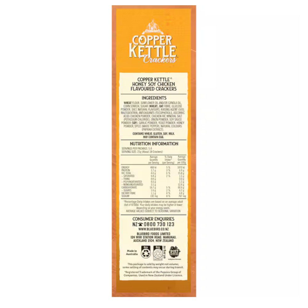 Copper Kettle Crackers Honey Soy Chicken are generously seasoned with a harmonious blend of sweet and salty flavours, which combine subtle soy sauce notes with the sweet liveliness of honey.